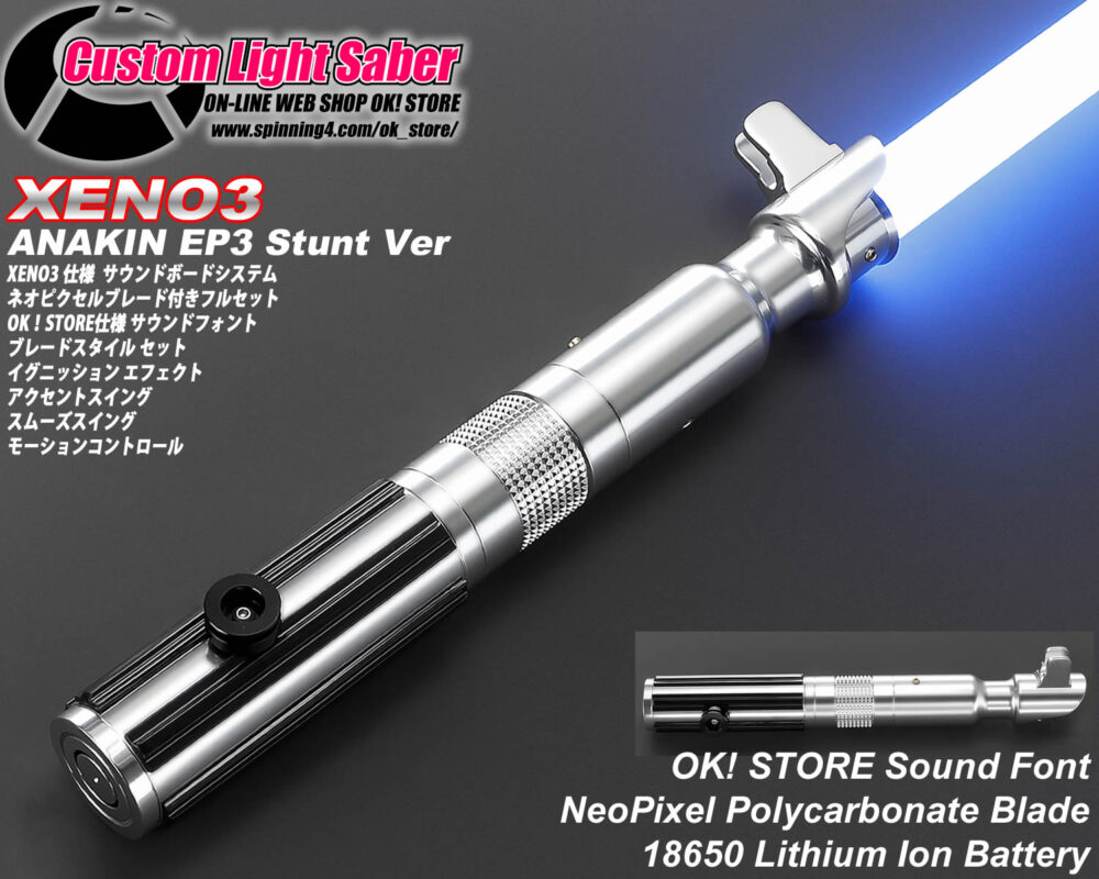 製品特徴:こちらのモデルはEPISODE 3の撮影時にアナキン用として使用されたスタント用のデザインをモチーフにしたカスタムライトセーバーでXENO3仕様です。ブレード仕様は太さ7/8インチ 長さ92cm 肉厚2mm です。